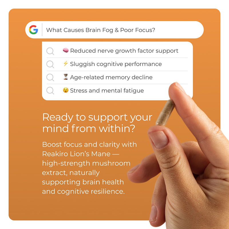 Daily Support for Mental Performance & Clarity with Reakiro Lion’s Mane Mushroom Capsules